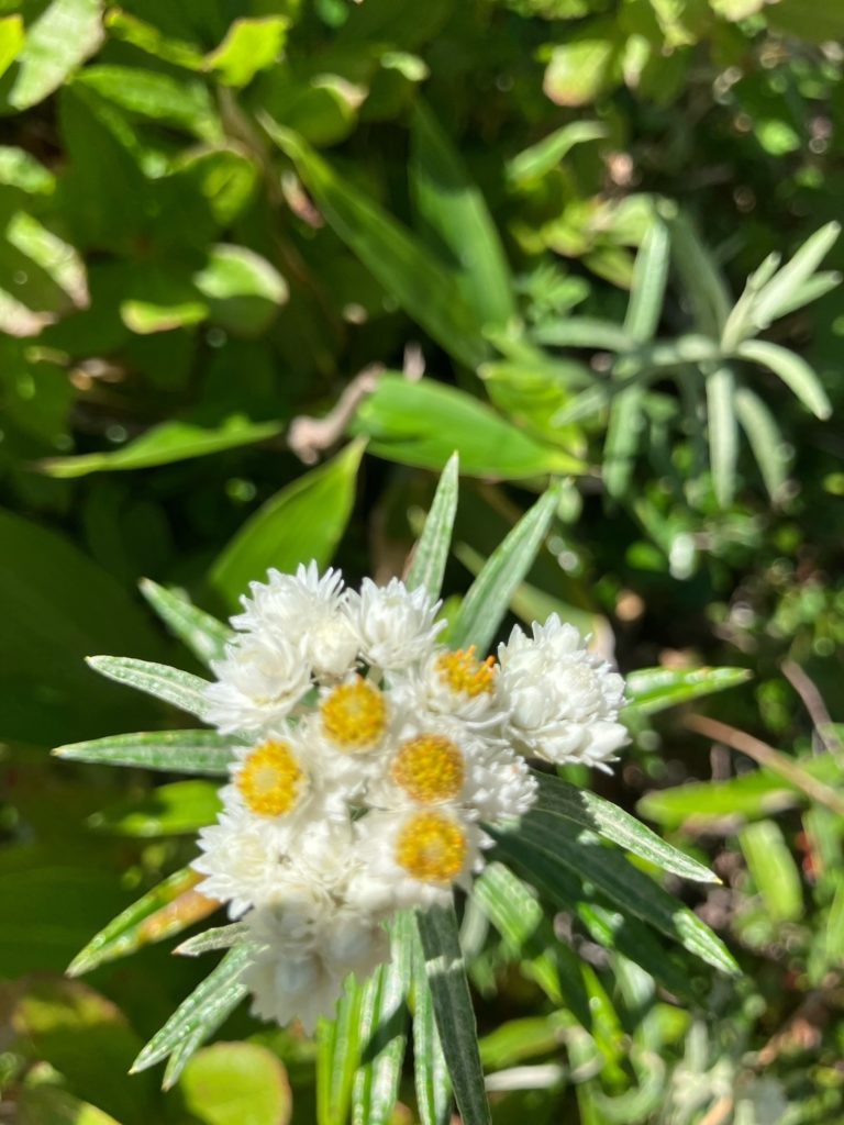 ツツジの花は見ることは出来ないが、それ以外の多くの花々が迎えてくれる。女性陣の撮影会が始まり、中々先に進まない。まあ今日は、避暑を兼ねたのんびり山行のつもりなので、汗まみれで急いで歩くよりましだ。後方の女性陣の歩みが更に遅くなる。後ろを見ると、1人歩きの男性と何か話している。どうやら花の撮影に登っている男性らしく、女性陣が花の名前について色々質問している。迷惑かと思ったが、男性も嬉しそうに説明しているので、大丈夫そうだ。女性陣は勝手に、花の先生と呼んでいた。山道には、多くの花々があるのだが、歳のせいか教えてもらっても、名前が覚えられない。かろうじて覚えたのが、ツリガネニンジンとウスユキ草だけなのが悲しい。ちなみに、ツリガネニンジンの若苗は美味しい山菜らしく、絶対に忘れないつもりだ。