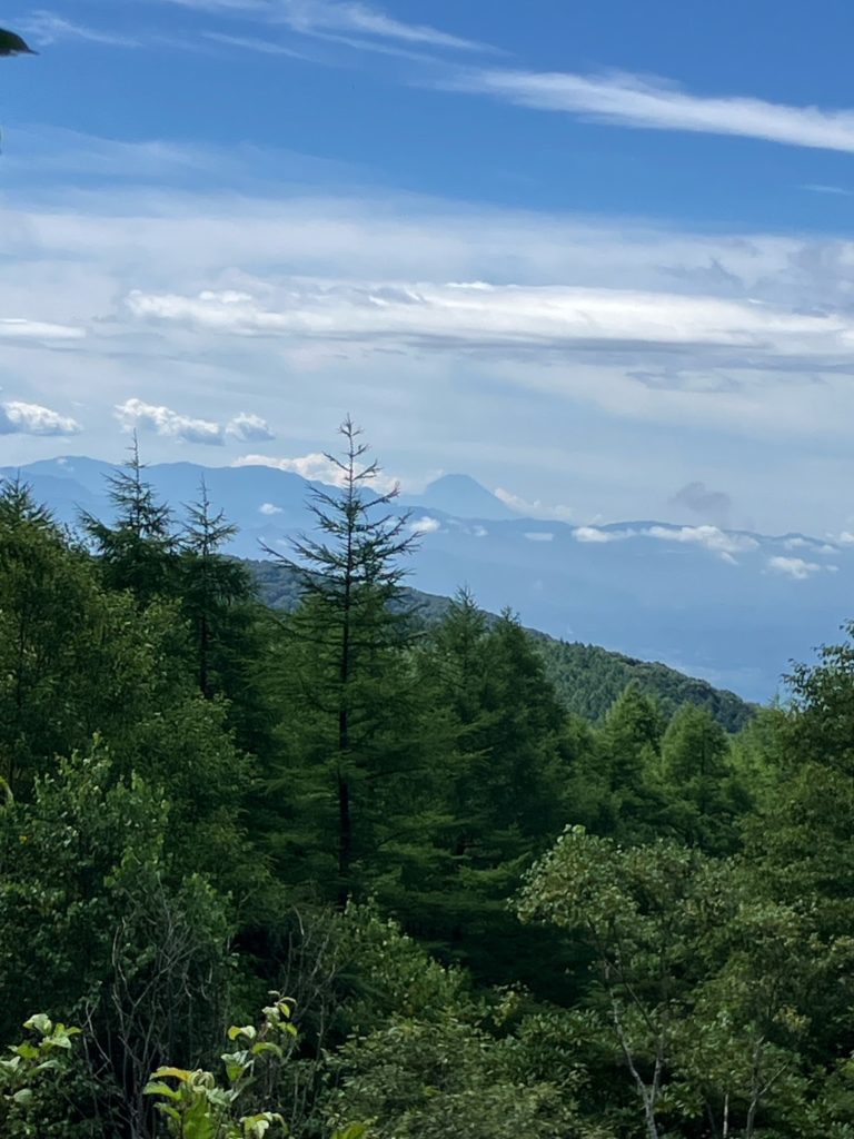 そして私Hが一番うれしかったのは、写真には撮れなかったが、一度見たかったクジャク蝶に出会えたこと。女性陣には興味が無いかもだが、それ以外にも、ヒョウモン系の蝶やアサギマダラやエルタテハ、ミヤマシロチョウ、セセリ系の蝶などを見ることが出来た。烏帽子岳山頂で、おやつ、景色堪能タイム後、惜しいが下山に向かう。下山路も特に危険な所もなく、ゆるい登山道。唯一気になったのが、樹林帯途中に大きな獣の糞が多数。牛が入れる場所ではないので、おそらく熊のトイレ場所かもしれないと思い、足早に通り過ぎる。16時31分駐車場に到着。山と高原地図の標準コースタイムは、休憩なしで5時間5分。それを休憩が入っているが、8時間かけての、のんびり山行であった。下山後は、ソフトクリームと温泉で疲れを癒し、夕食のうどんとミニ(にしては大きい)天丼セットでエネルギー補給後、帰路に向かう。途中大きな渋滞も無く、立川駅にて解散する。たまには夏なのに、あまり汗もかかず、息も切れないのんびり山行もありだと思った1日であった。 記H