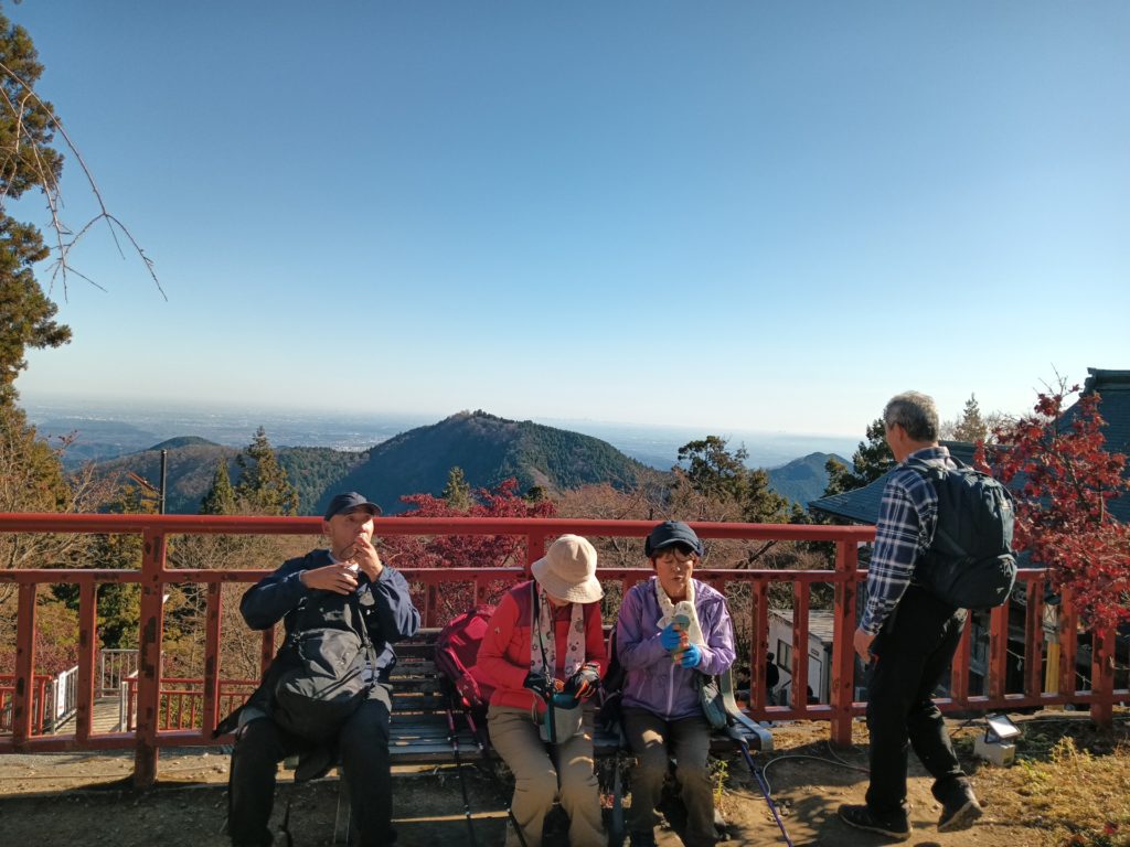 7時JR武蔵五日市駅集合、7時12発つるつる温泉行バスには山に向かう我々(5名)と、一般客2名が乗車。日頃は御岳山、日の出山に登って、帰りはつるつる温泉で疲れを取るパターン。今日は逆で、ひたすら登つて、登って日の出山に向かう。今まで見れなかった光景が出て来るのだろう。顎乗せ岩辺りから、スカイツリーや新宿が霞みながら見える。我々を追い越す人や下ってくる人もいる。 日の出山(902m)に9:30到着、富士山がほんの少し見える。元旦の日の出を見に来る人で賑わう広場は、今日は我々を入れて3組。御岳山に向かうと、下からどんどん登って来る、若い人も高齢者も。ここから御嶽神社、御嶽山に向かう。今度は下り。民家が見えると急な坂、神社への階段を登る。奥の院を拝礼する所がある。今日は下りの3倍以上の上りという、珍しい山行。御岳ロックガーデン組と合流して、山香荘の昼食とお風呂に向かう。浅田次郎さんゆかりの宿、予約した入浴と蕎麦御膳で1年を振り返り、来年の抱負を出し合いました。3H5 5.6km 上り774m 下り212m(T記)