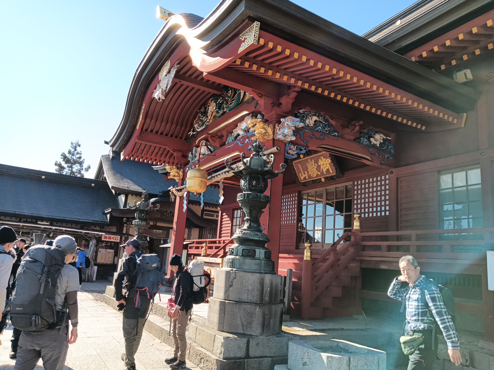 7時JR武蔵五日市駅集合、7時12発つるつる温泉行バスには山に向かう我々(5名)と、一般客2名が乗車。日頃は御岳山、日の出山に登って、帰りはつるつる温泉で疲れを取るパターン。今日は逆で、ひたすら登つて、登って日の出山に向かう。今まで見れなかった光景が出て来るのだろう。顎乗せ岩辺りから、スカイツリーや新宿が霞みながら見える。我々を追い越す人や下ってくる人もいる。 日の出山(902m)に9:30到着、富士山がほんの少し見える。元旦の日の出を見に来る人で賑わう広場は、今日は我々を入れて3組。御岳山に向かうと、下からどんどん登って来る、若い人も高齢者も。ここから御嶽神社、御嶽山に向かう。今度は下り。民家が見えると急な坂、神社への階段を登る。奥の院を拝礼する所がある。今日は下りの3倍以上の上りという、珍しい山行。御岳ロックガーデン組と合流して、山香荘の昼食とお風呂に向かう。浅田次郎さんゆかりの宿、予約した入浴と蕎麦御膳で1年を振り返り、来年の抱負を出し合いました。3H5 5.6km 上り774m 下り212m(T記)