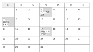 3月 山行カレンダー